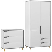 HOMCOM Bedroom Furniture Set, Wardrobe with Hanging Rail, 3 Drawer Chest of Drawers with Cut-out Handles, Grey and White - Grey, White