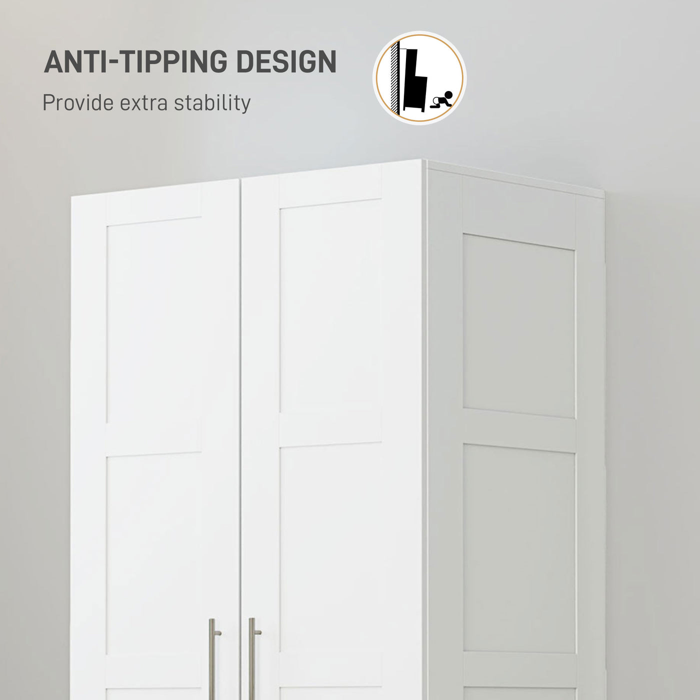 HOMCOM Double Paneled Door Wardrobe, with Shelves - White