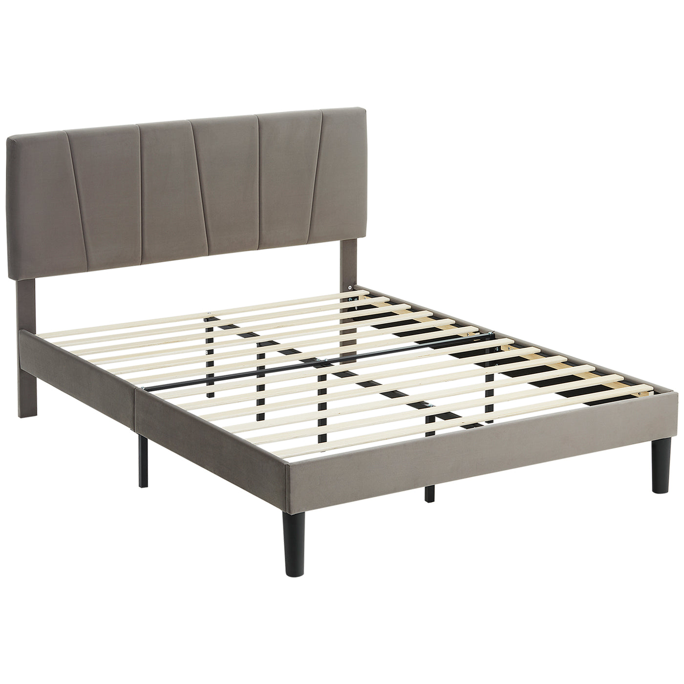 HOMCOM King Size Bed Frame, with Velvet-Feel Headboard - Grey - Grey