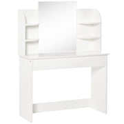HOMCOM Modern Dressing Table Writing Desk W/ Mirror, Big Drawers, 2-Tier Open Shelf For Home Bedroom White - White