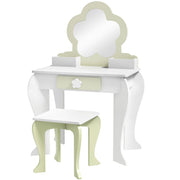 ZONEKIZ Kids Vanity Table with Mirror and Stool, Drawer, Storage Boxes, Flower Design, for Ages 3-6 Years - White - White