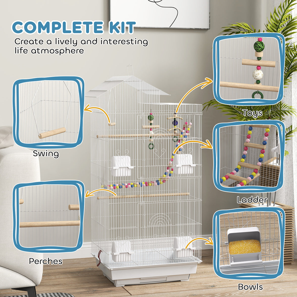 PawHut Bird Cage for Budgies, Finches, Canaries w/ Accessories, Toys, Tray, White