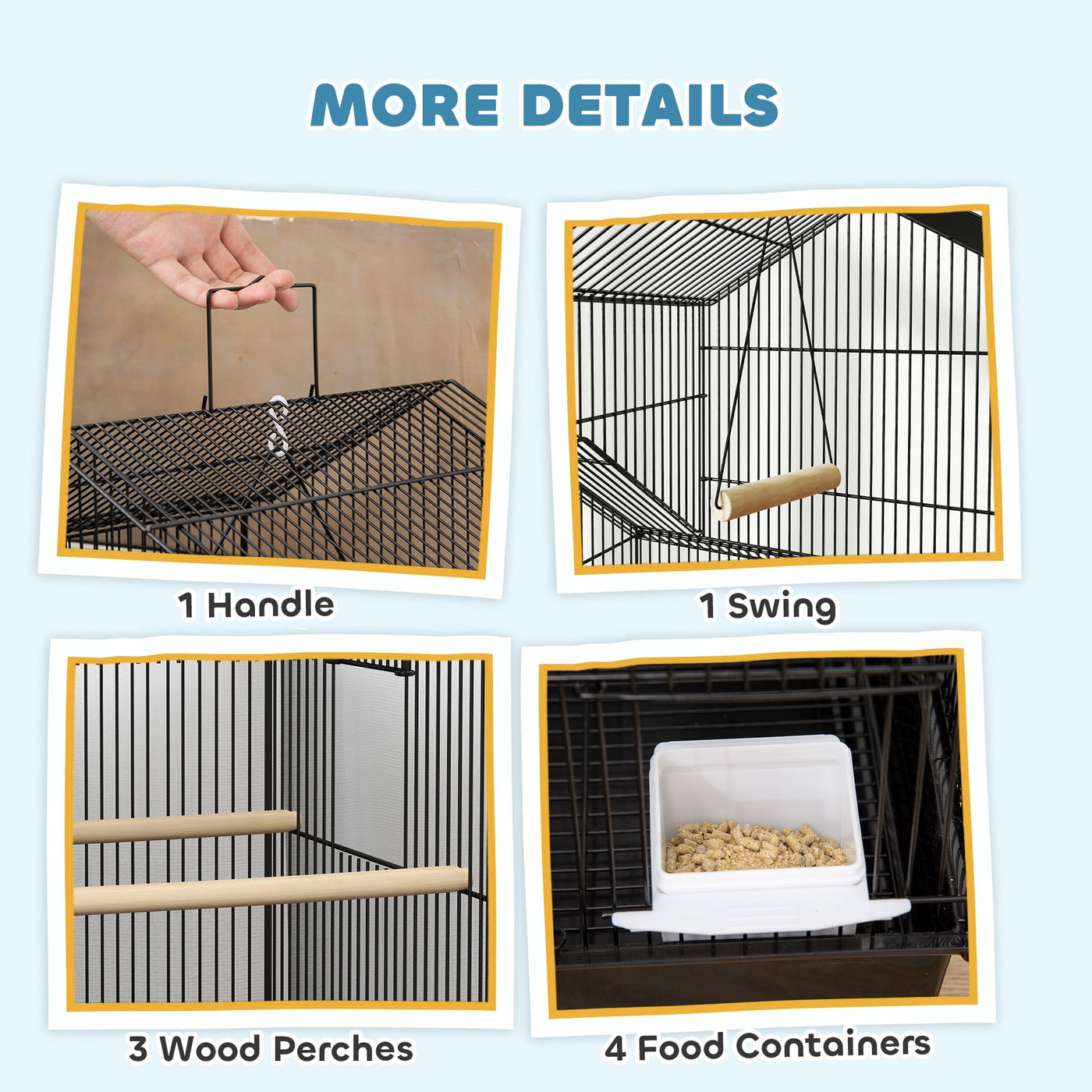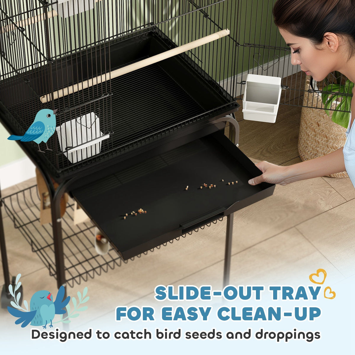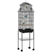 PawHut Metal Bird Cage with Plastic Swing, Perch, Food Container, Tray, Handle, for Finches, Canaries, Budgies, 43 x 32.5 x 163 - Black