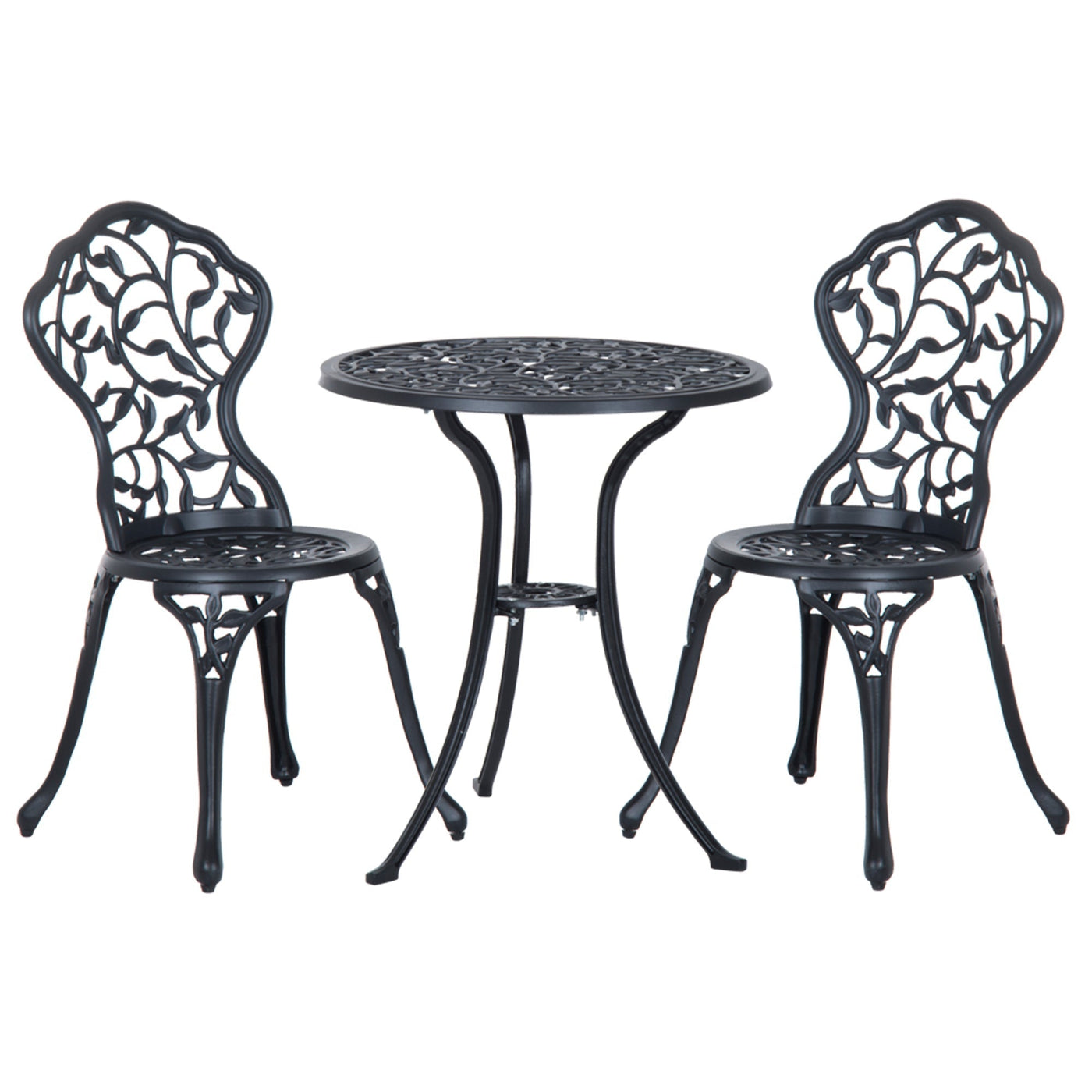 Outsunny 3 Pcs Aluminium Bistro Set Garden Furniture Dining Table Chairs Antique Outdoor Seat Patio Seater Black - Black