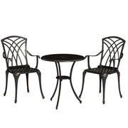 Outsunny 3 Pieces Garden Dining Set for 2, Cast Aluminium Outdoor Dining Set with 2 Armchairs and Round Dining Table with Parasol Hole, Garden Furniture Set, Bronze Tone - Bronze Tone