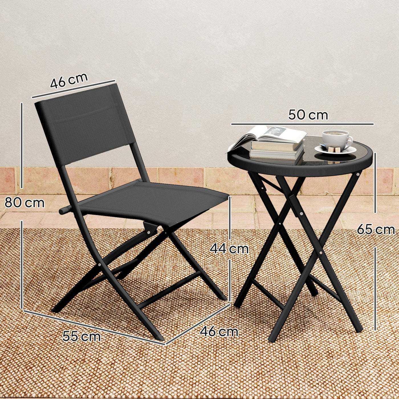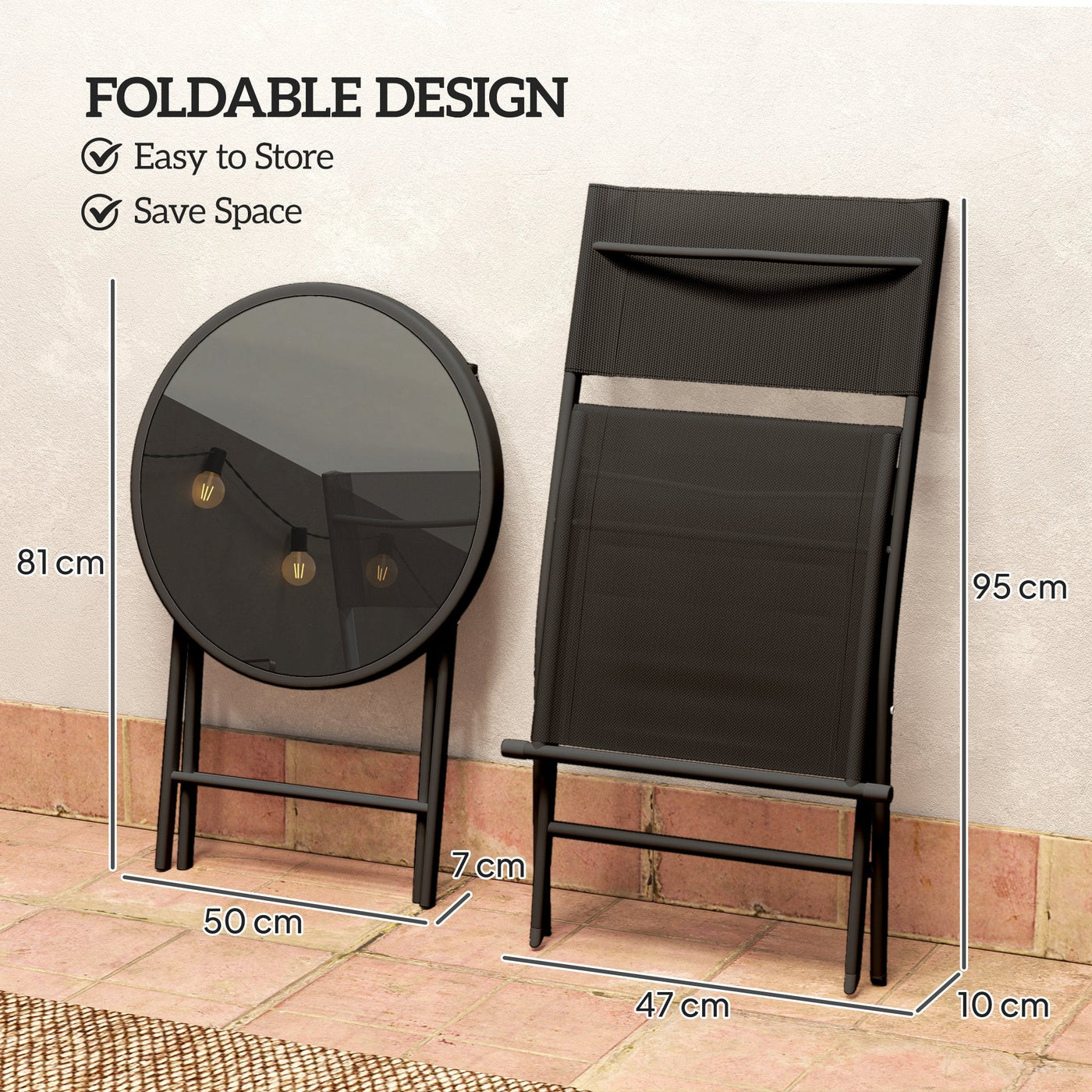 Outsunny 3 Pieces Outdoor Bistro Set, Glass Top Outdoor Table and 2 Folding Chairs with Protecting Feet, Black - Black