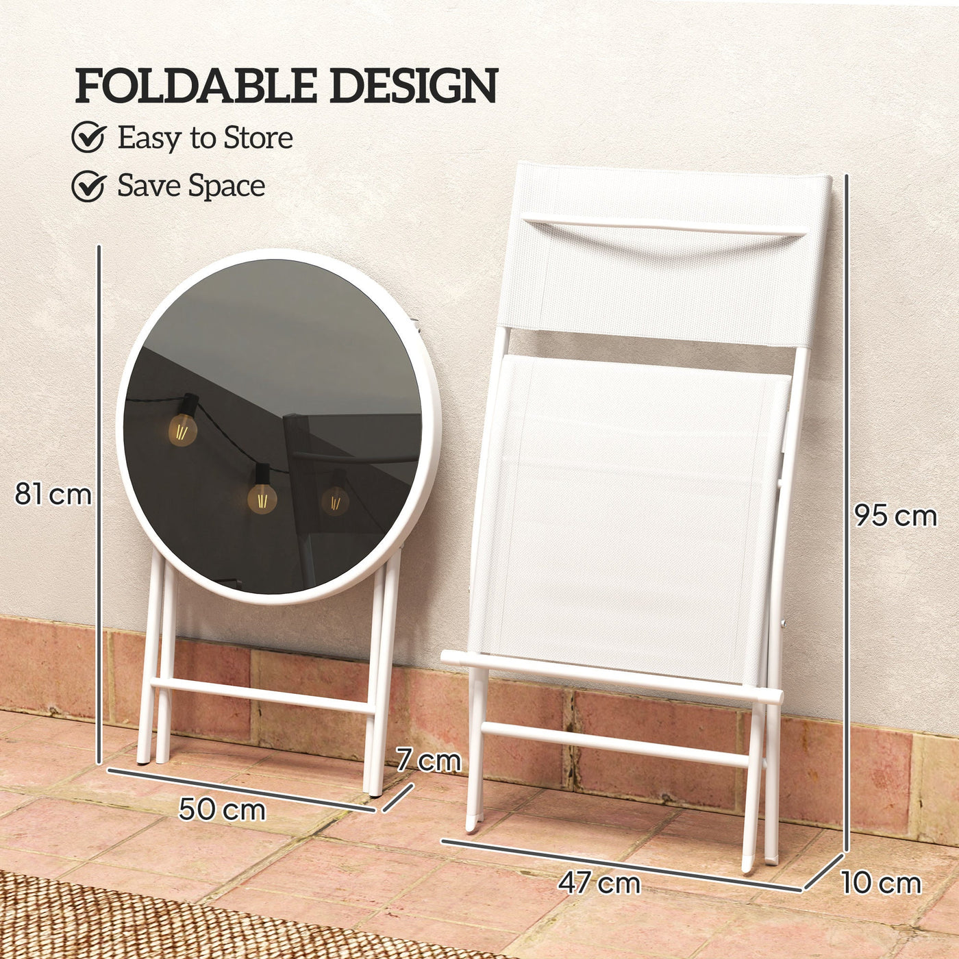 Outsunny 3 Pieces Outdoor Bistro Set, Glass Top Outdoor Table and 2 Folding Chairs with Protecting Feet, White - White