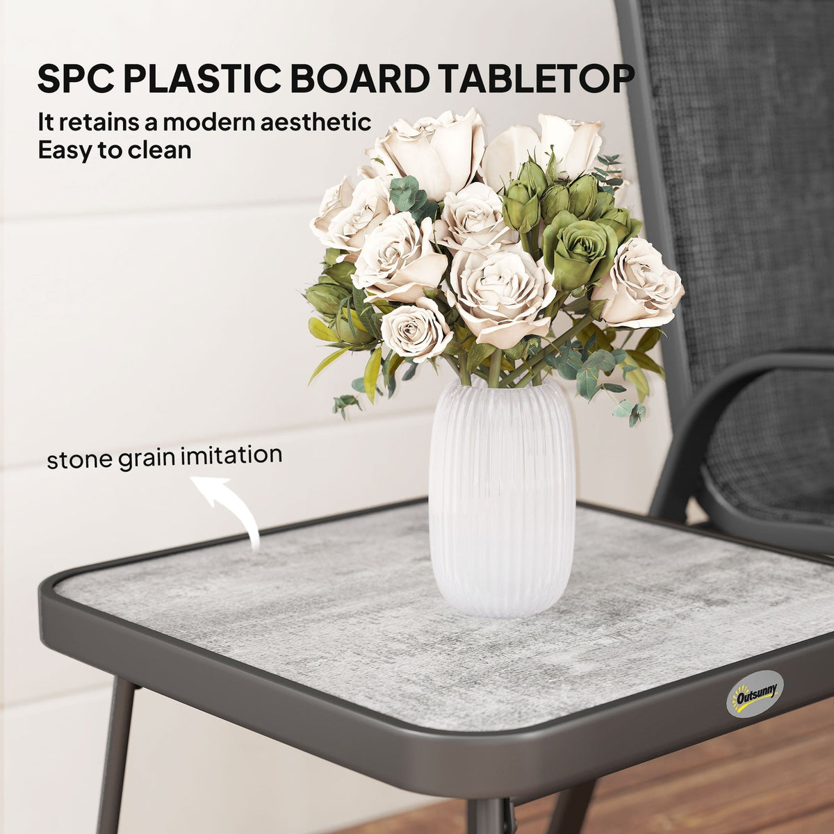 Outsunny 3 Pieces Outdoor Bistro Set, Patio Stackable Armchairs with Breathable Mesh Fabric and SPC Board Coffee Table, Black - Black