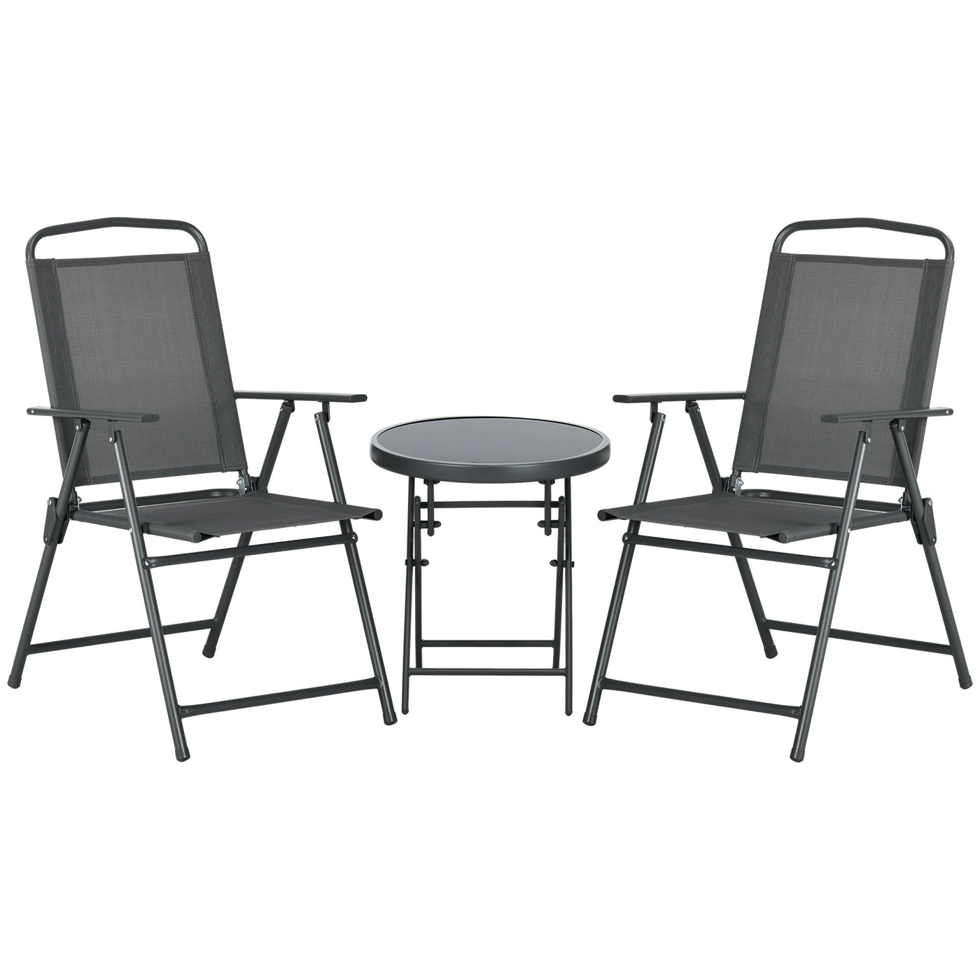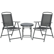 Outsunny Three-Piece Garden Seat Set, with Glass-Top Table - Dark Grey - Dark Grey