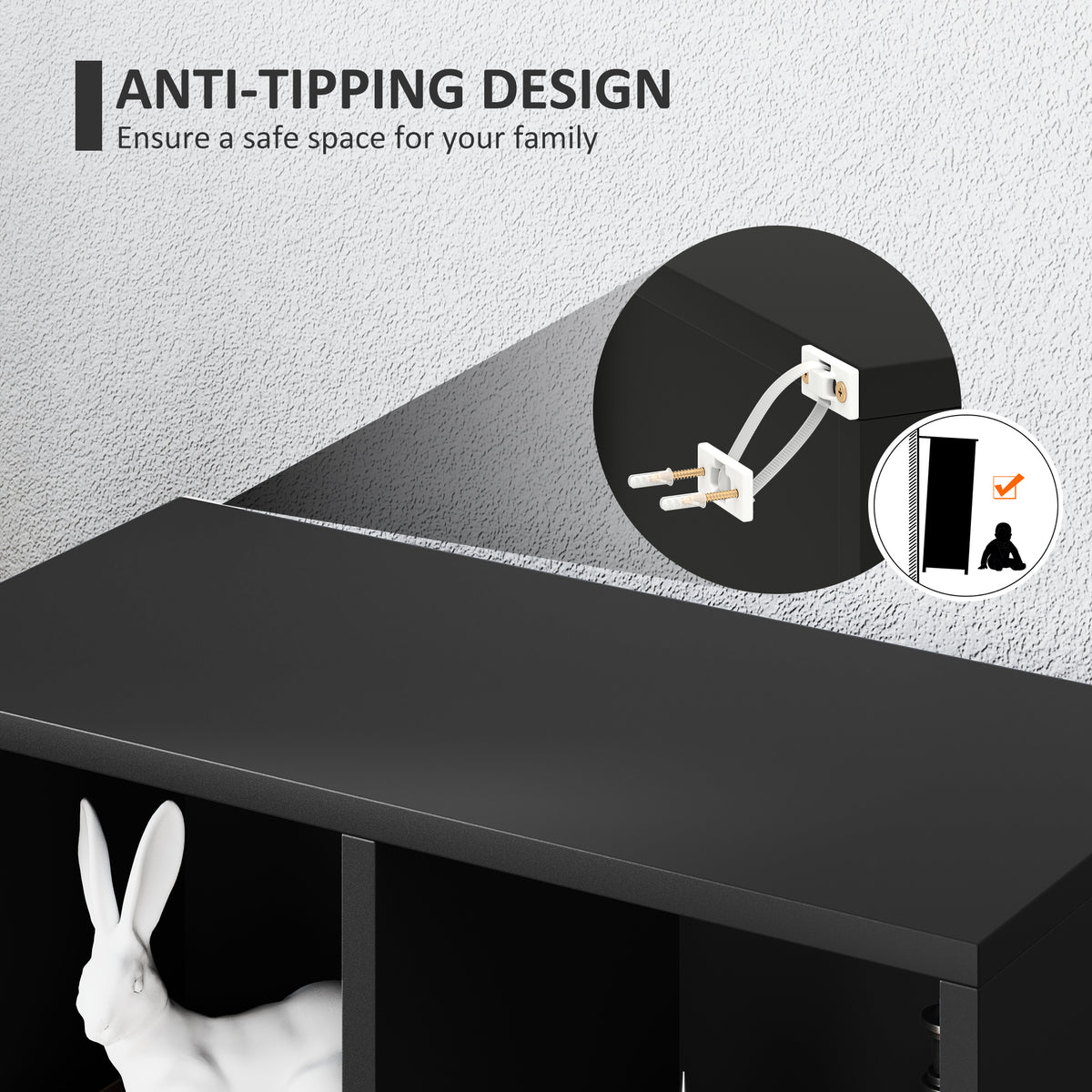 HOMCOM 2-Tier Bookshelf with 5 Compartments - Black - Black