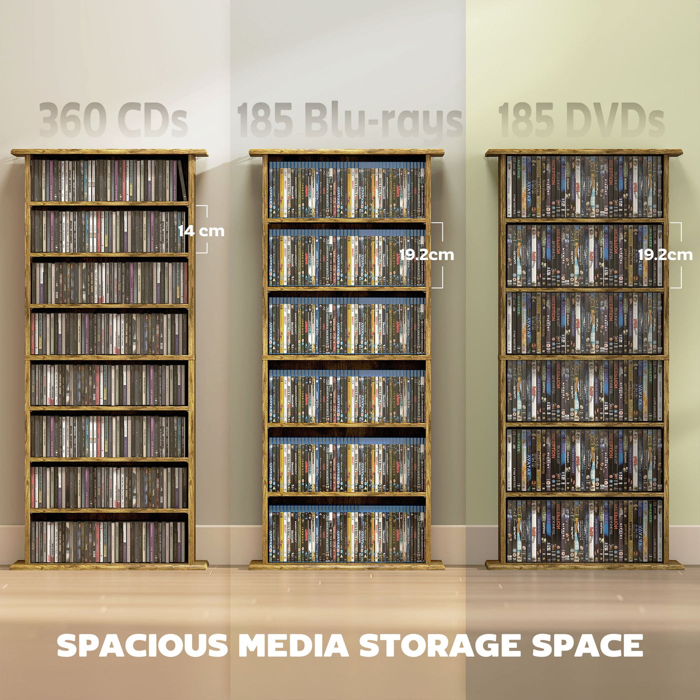 This HOMCOM DVD rack showcases 8 shelves, with 6 adjustable shelves: room for up to 360 CDs, 185 DVDs or...