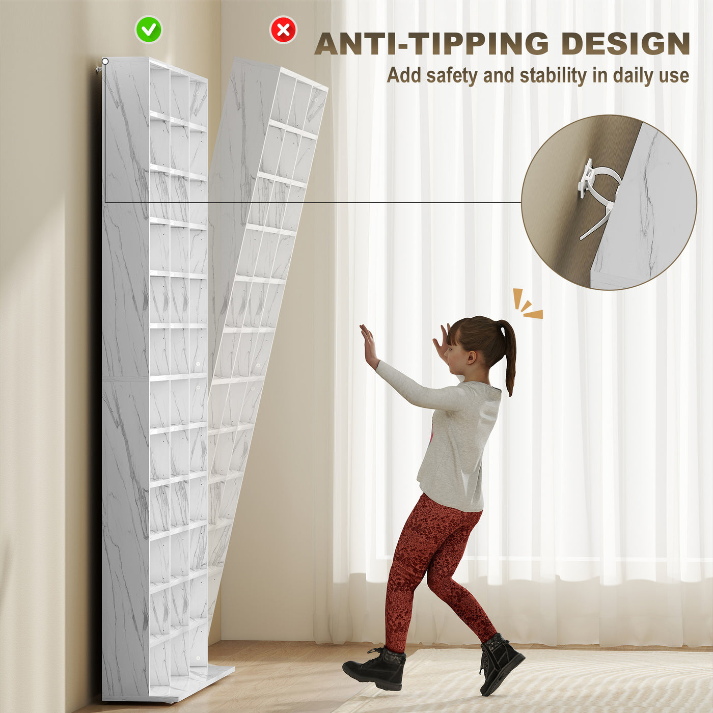 HOMCOM CD Storage Unit with Adjustable Shelves, 102 x 195 cm, Marble Effect - Marble Effect