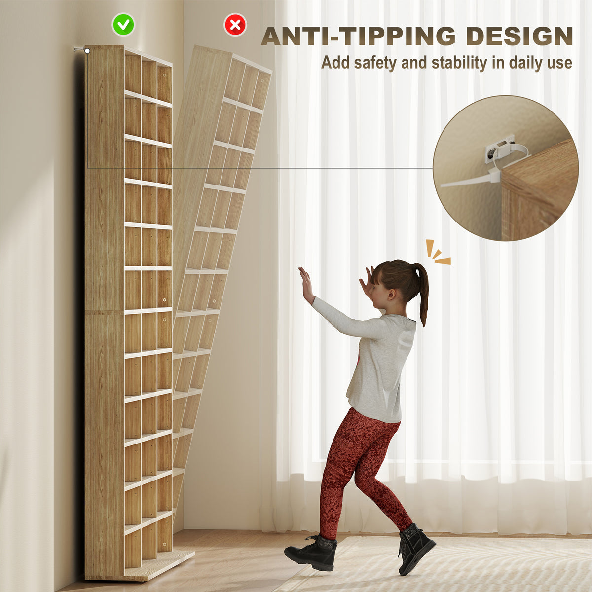 HOMCOM CD Storage Unit with Adjustable Shelves, 102 x 195 cm, Oak Tone - Oak