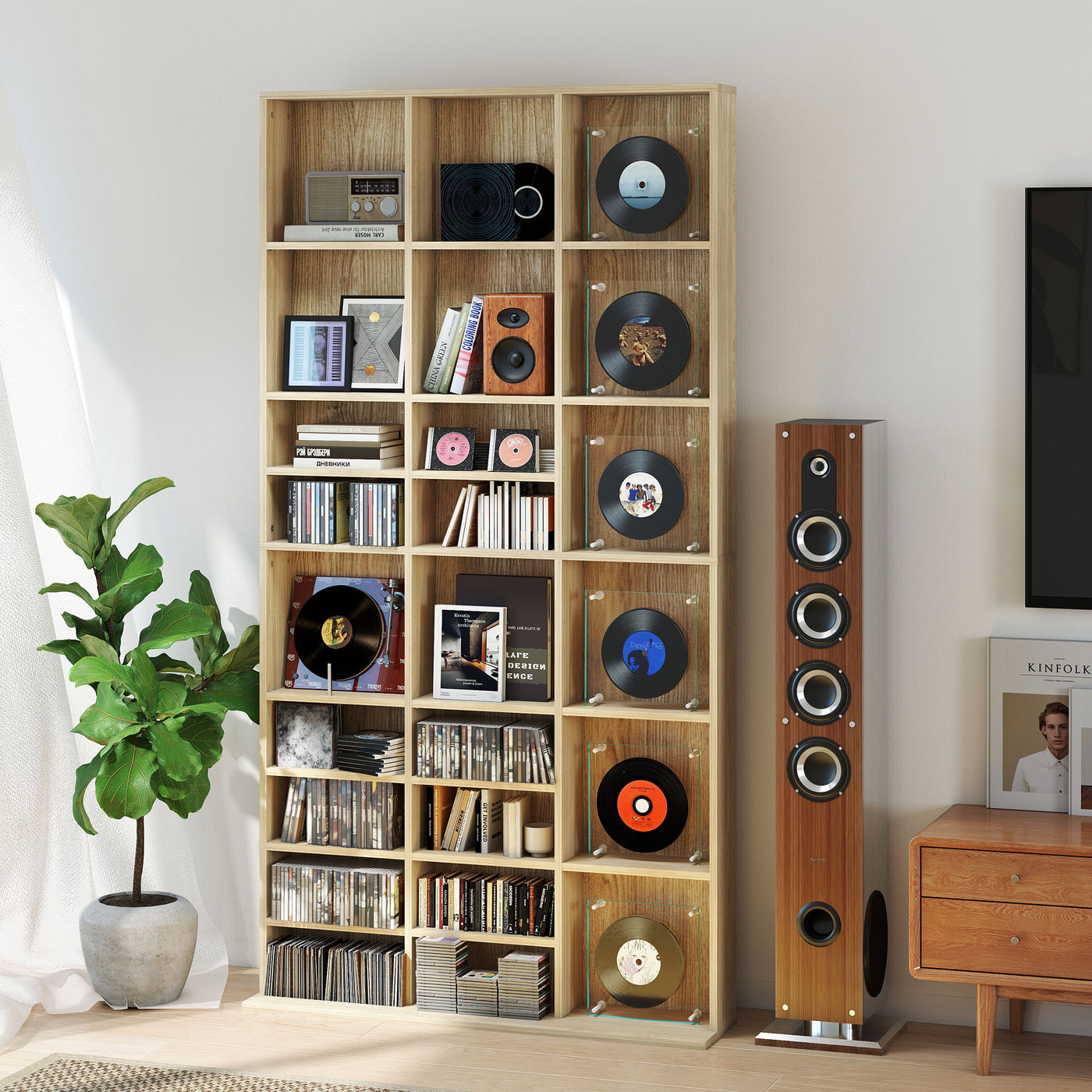 HOMCOM CD Storage Unit with Adjustable Shelves, 102 x 195 cm, Oak Tone