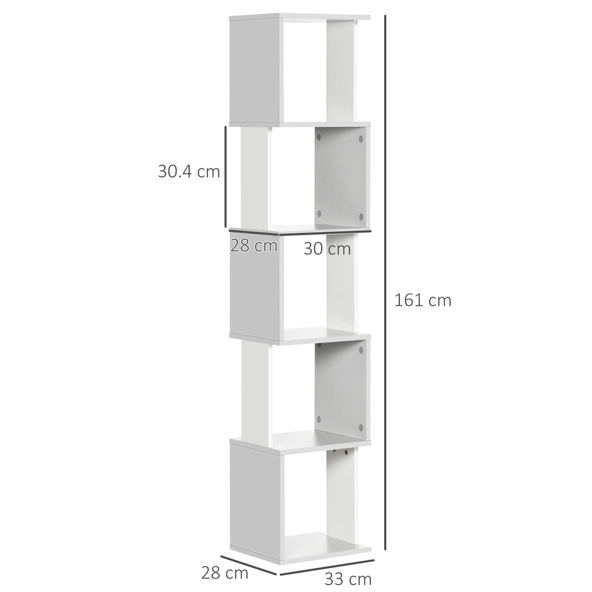 HOMCOM Modern 5-Tier Bookshelf, Freestanding Bookcase Storage Shelving for Living Room Home Office Study, White and Light Grey - Light Grey