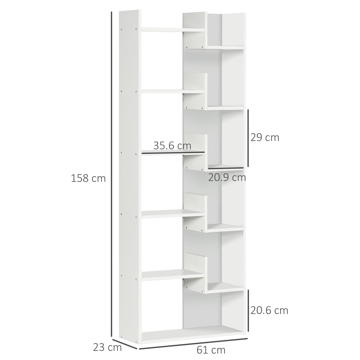 HOMCOM Modern Book Shelf with 11 Open Shelves, 6-Tier Bookcase, Freestanding Shelving Unit for Home Office and Study, White - White