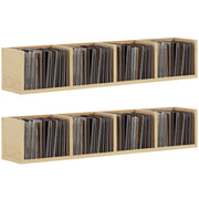 HOMCOM Wall Mount 84 CD / 56 DVD/Blu-ray/ Media Storage Rack 4 Cubes, Wooden Shelf Organiser Unit Bookcase Display, Set of 2, Natural Wood Finish - Natural wood finish