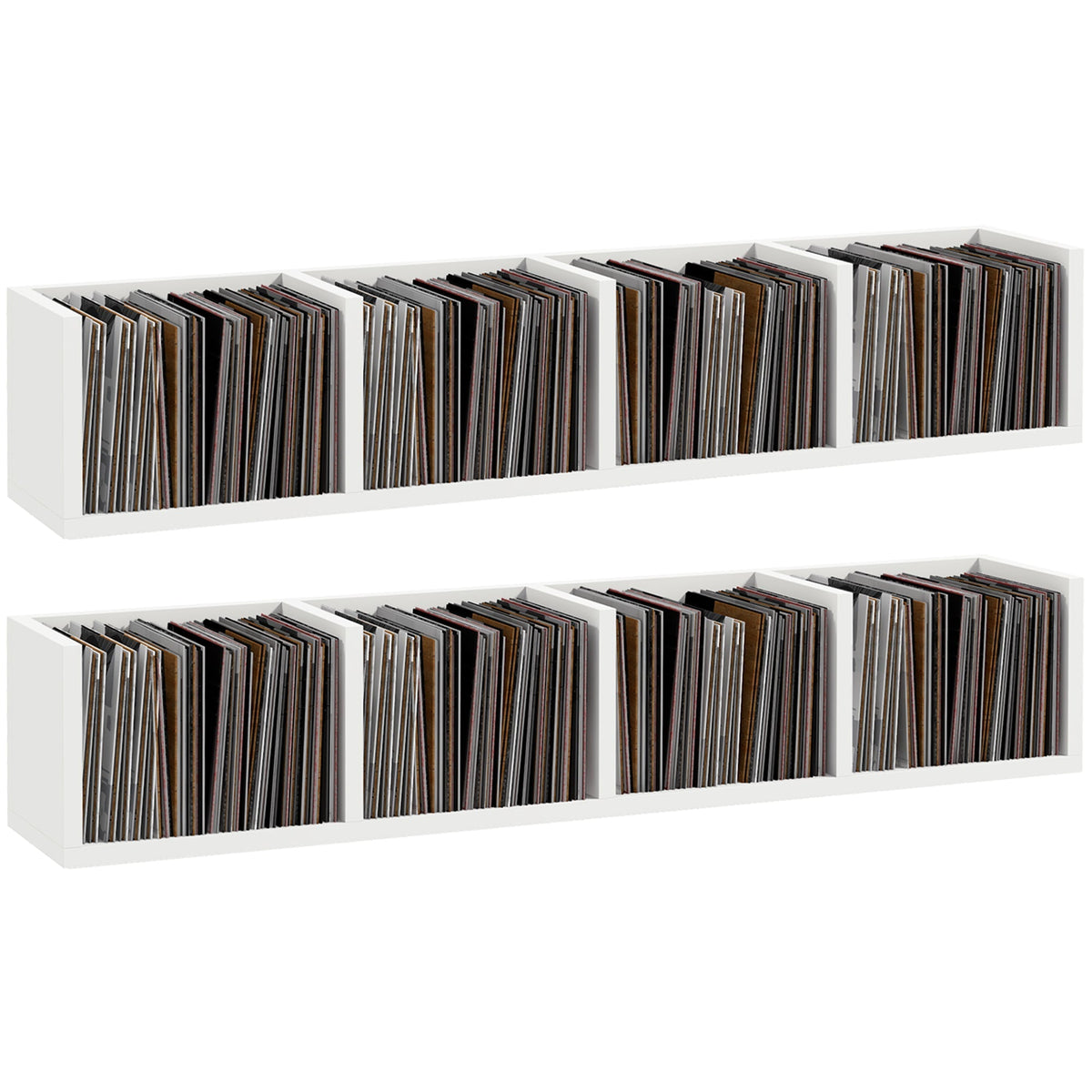 HOMCOM Wall Mount 84 CD / 56 DVD/Blu-ray/ Media Storage Rack 4 Cubes, Wooden Shelf Organiser Unit Bookcase Display, Set of 2, White - White