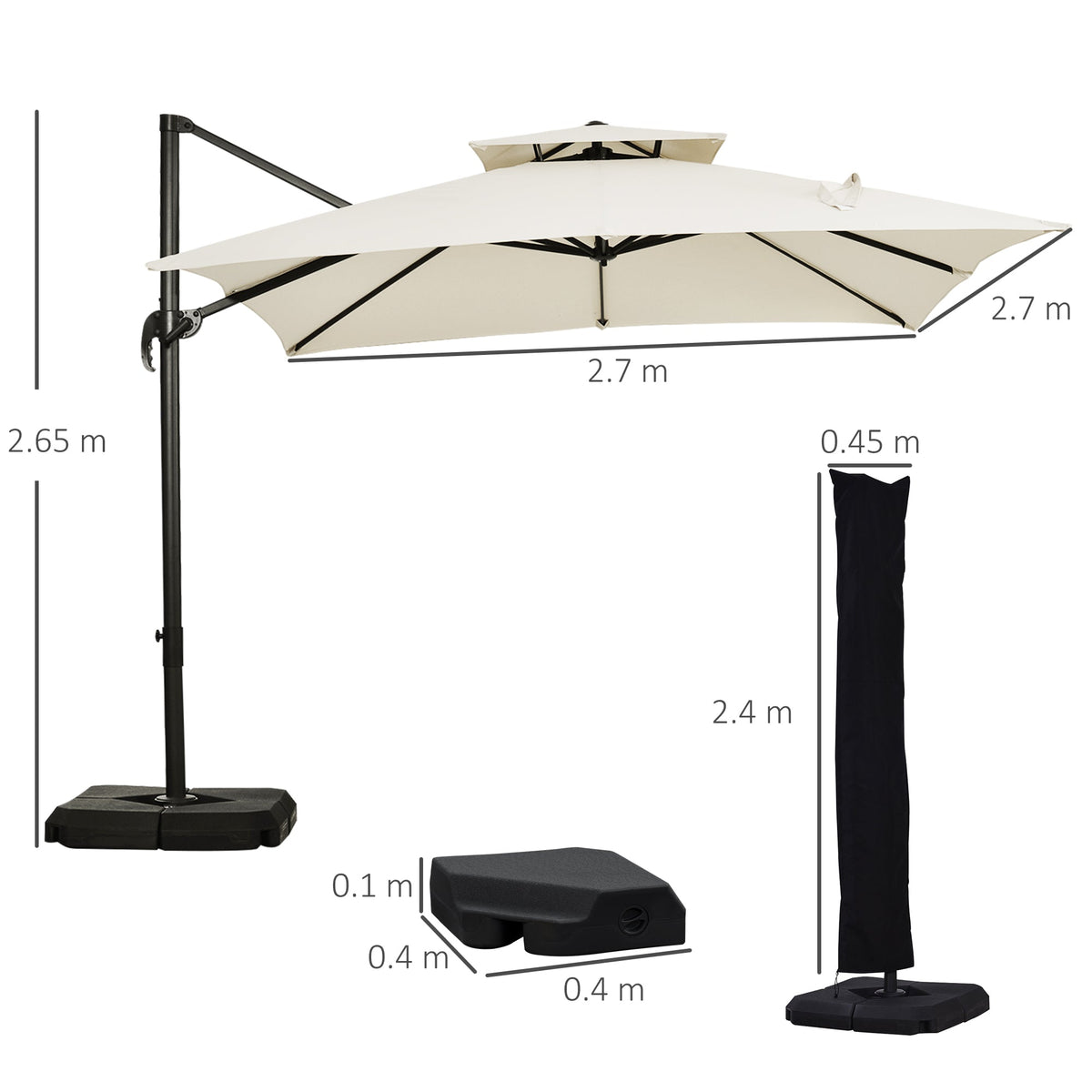 Outsunny Steel Frame Outdoor Roma Cantilever Umbrella