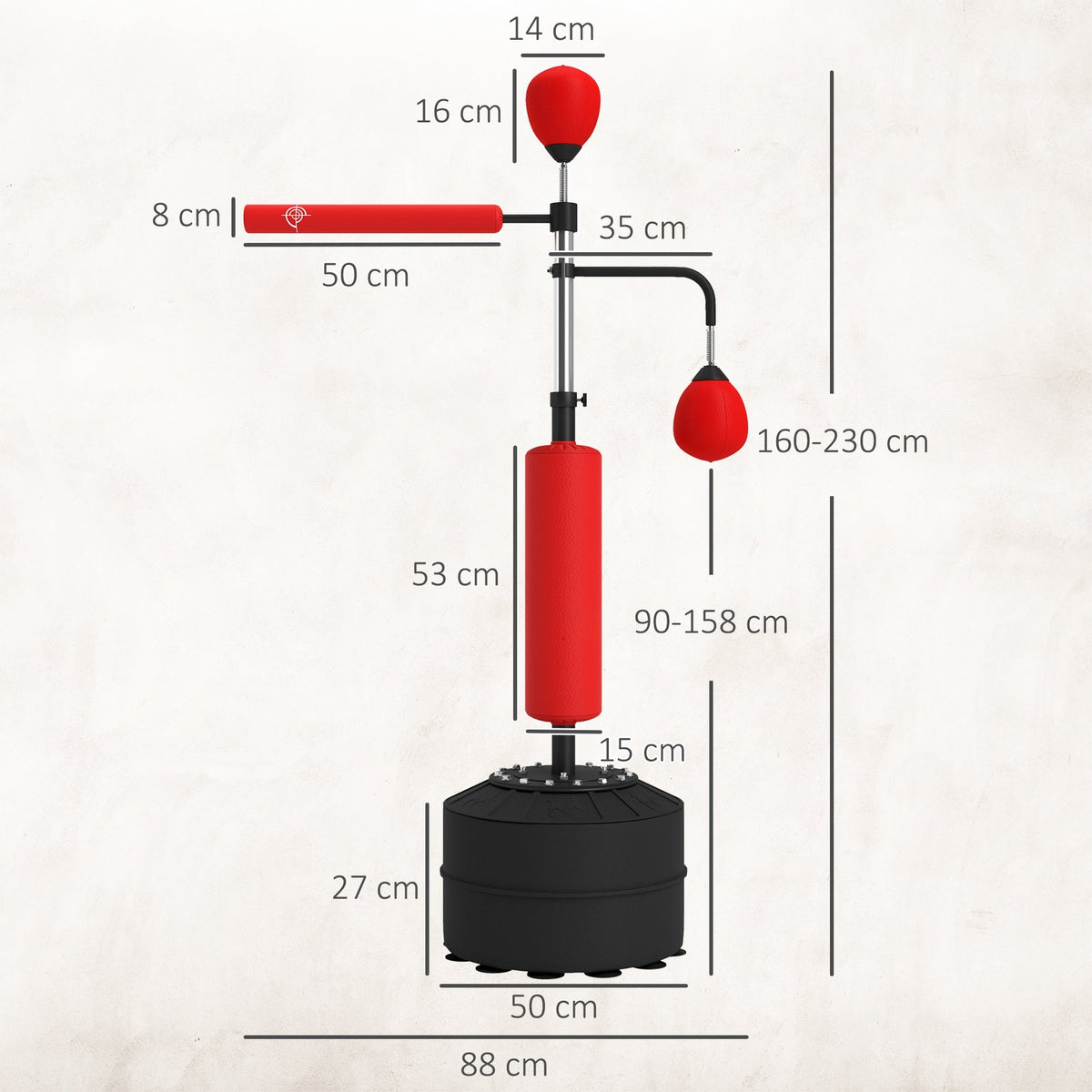 HOMCOM 4-in-1 Boxing Punching Bag, Freestanding with 2 Speed Bals, 360 Reflex Bar, 160-230cm Adjustable Height, Red - Red