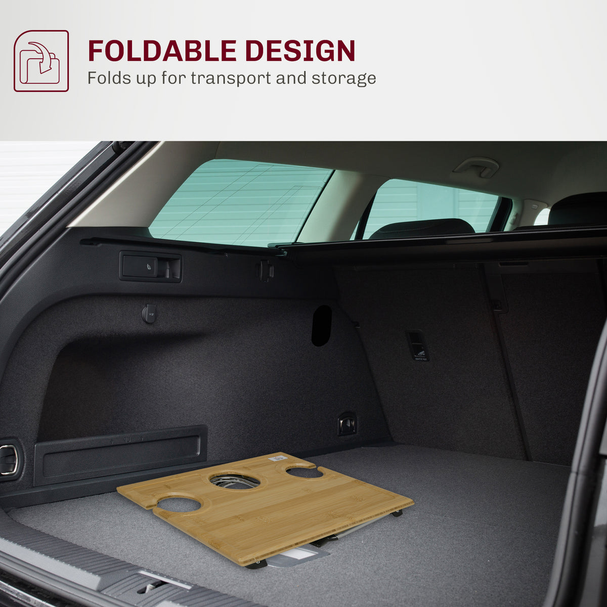HOMCOM Portable Bamboo Top Wine and Glass Picnic Table - Natural wood finish