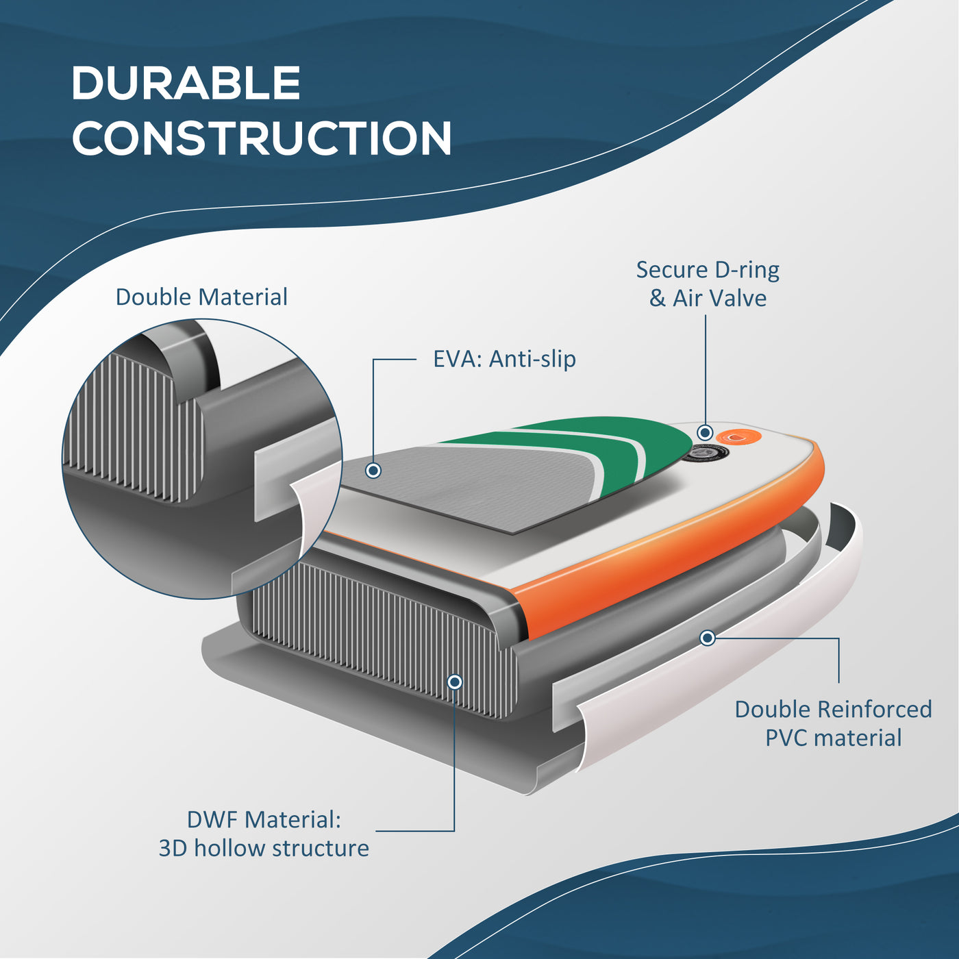 Outsunny 10'6" x 30" x 6" Inflatable Stand Up Paddle Board, Non-Slip & Ultra-Light Deck with Adj Paddle, ISUP Accessories, Pump and Carry Bag, for Youth Adults Beginner - White