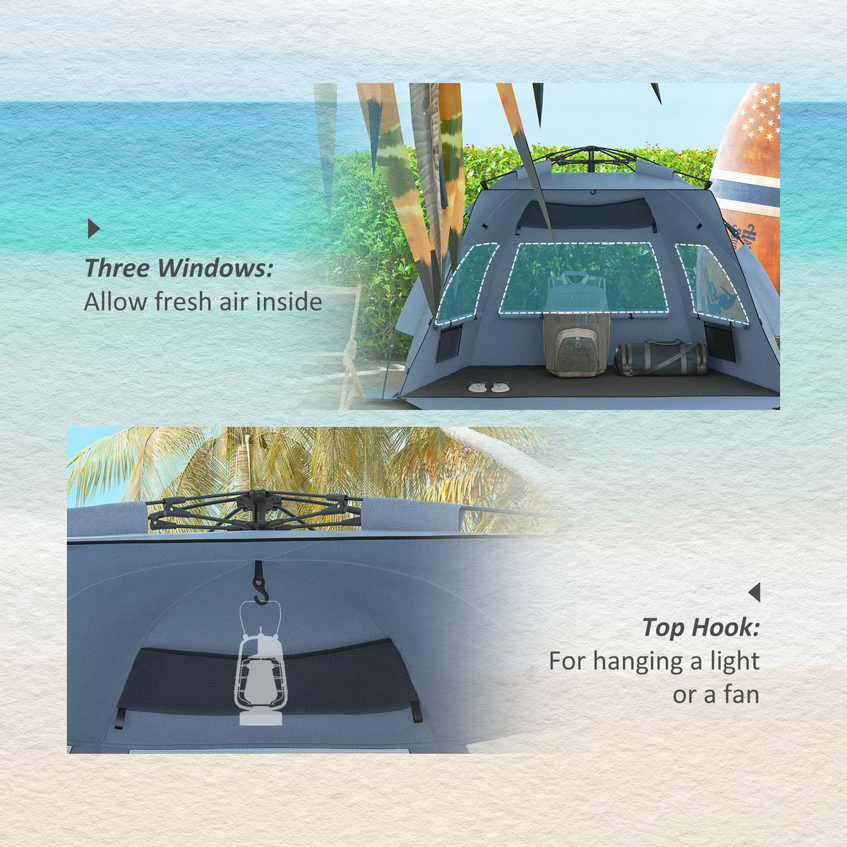 Outsunny 2-3 Person Pop Up Beach Tent, UPF15+ Sun Shelter with Extended Floor, Sandbags, Mesh Windows and Carry Bag, Light Blue