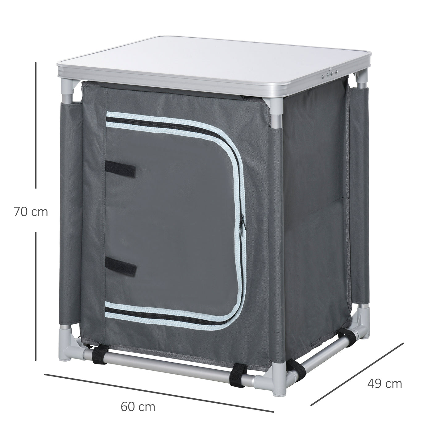 Outsunny 2-Shelf Camping Cupboard Camping Kitchen Station Cook Table Aluminum, Storage Organiser for BBQ Party Picnics Backyards with Carrying Bag - Grey