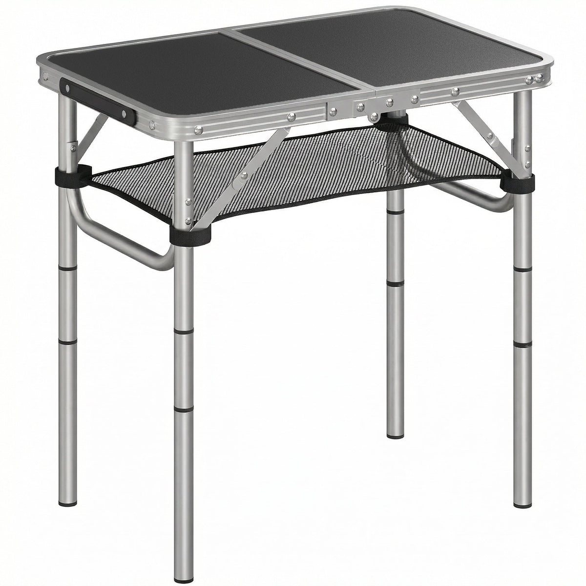 Outsunny 2ft Folding Camping Table, Picnic Table with Mesh Storage Layer, 4 Adjustable Heights and Carrying Handle, Black - Black