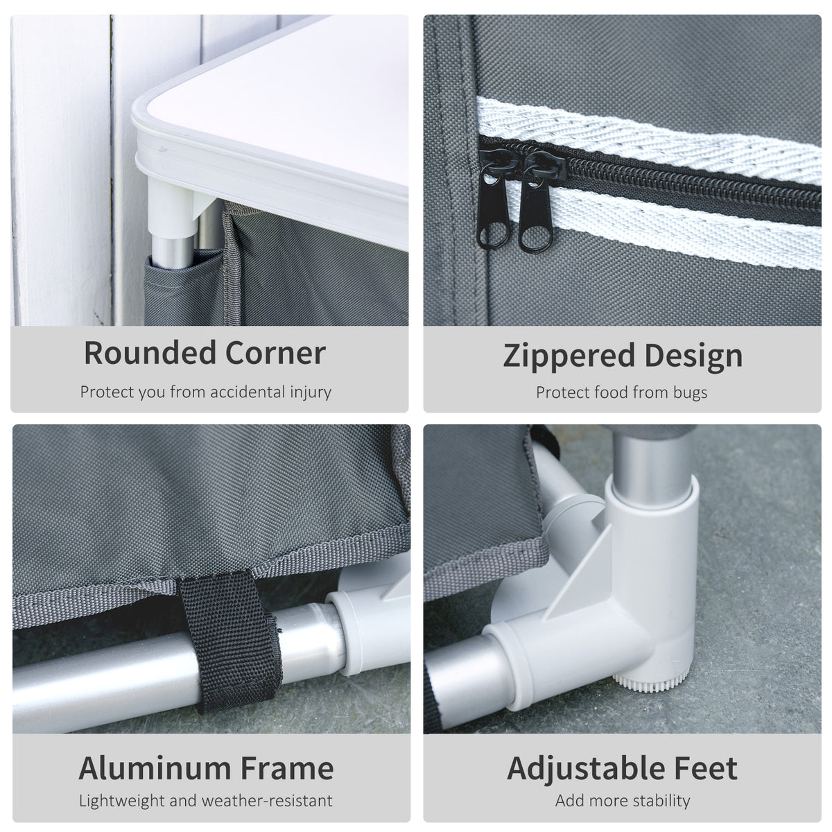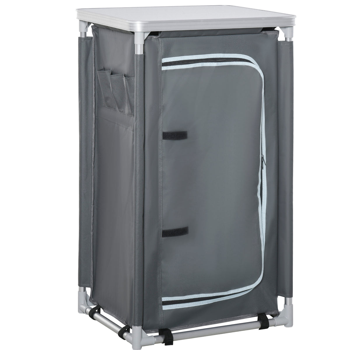 Outsunny 3-Shelf Camping Cupboard Camping Kitchen Station Cook Table, Storage Organiser for BBQ Party Picnics Backyards with Carrying Bag, Grey - Grey