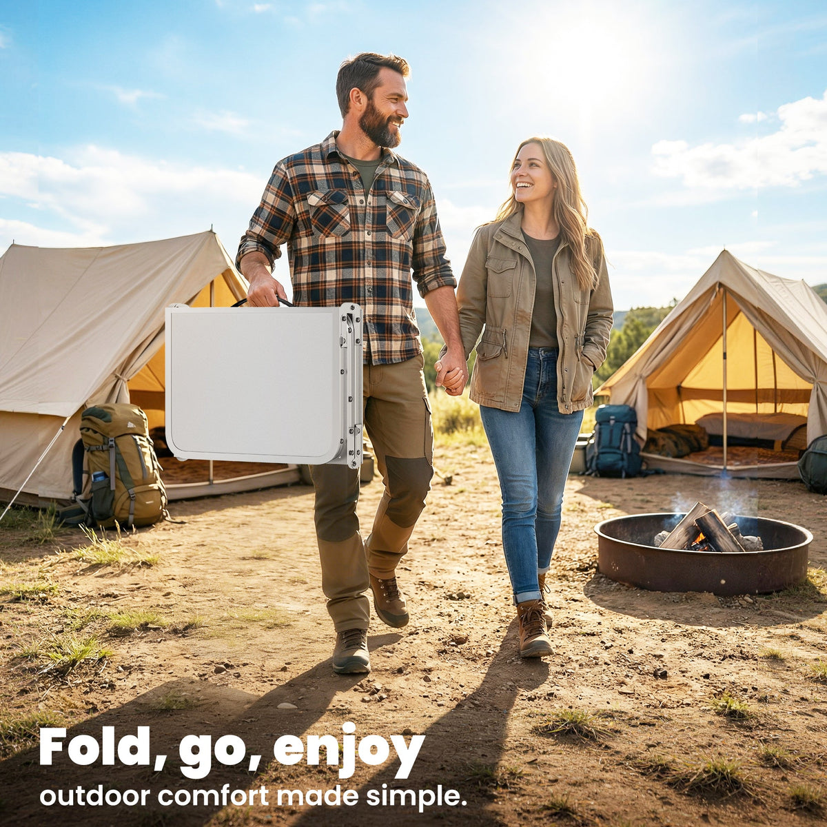 Outsunny 3ft Folding Camping Table, Picnic Table with Mesh Storage Layer, Carrying Bag and Metal Frame, Cream White - Cream
