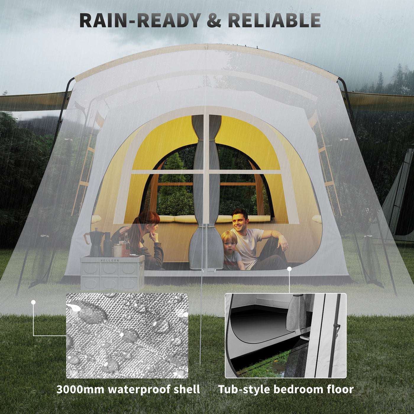 Outsunny 4 Man Tunnel Tent, Family Camping Tent with Porch, Bedroom and Living Area, Sewn in Groundsheet, 3000mm Waterproof, Portable with Bag for Hiking, Festival, Backpacking, Khaki - Khaki