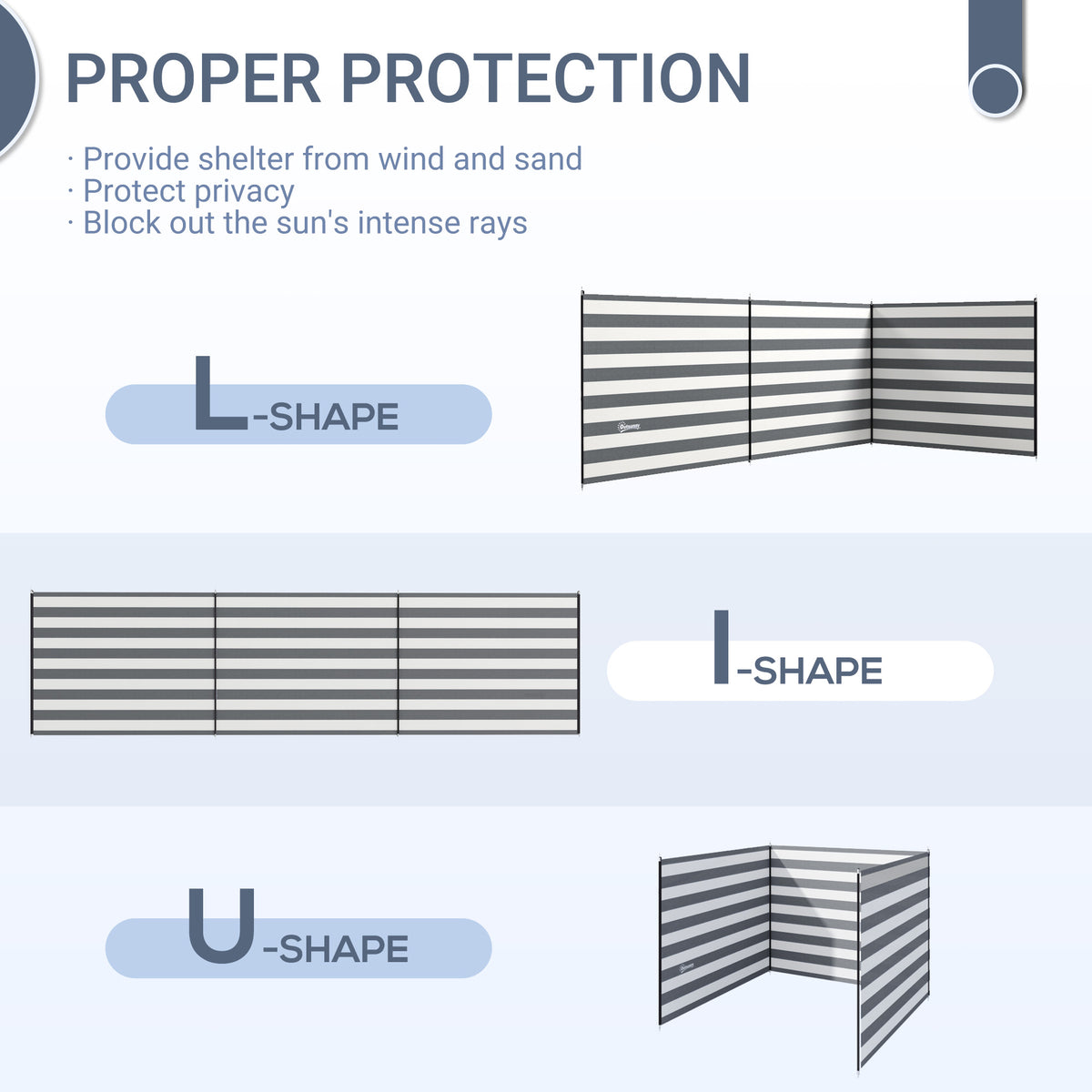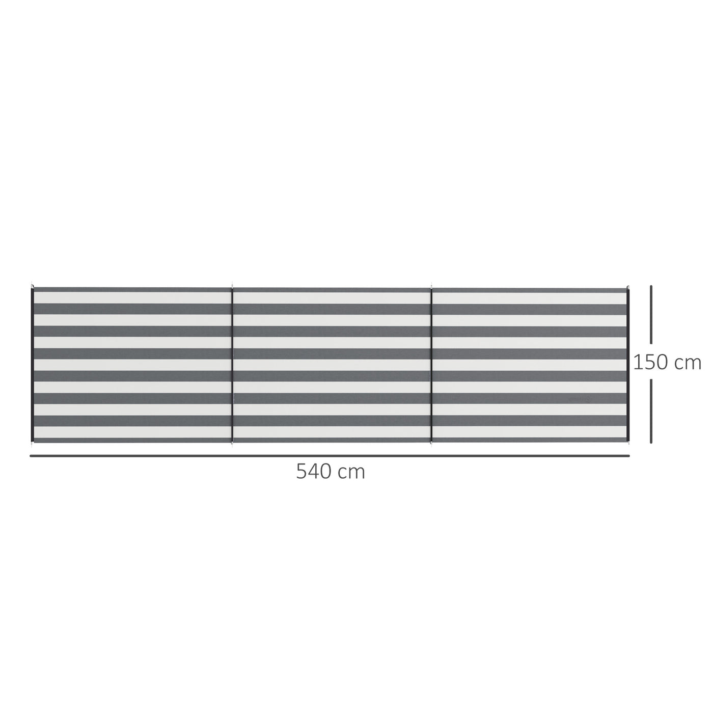 Outsunny 4 Pole Camping Windbreaks, Beach Wind Shield Shelter with Carry Bag and Steel Poles, Outdoor Caravan Privacy Shield, 540cm x 150cm, Grey and White - Grey, White