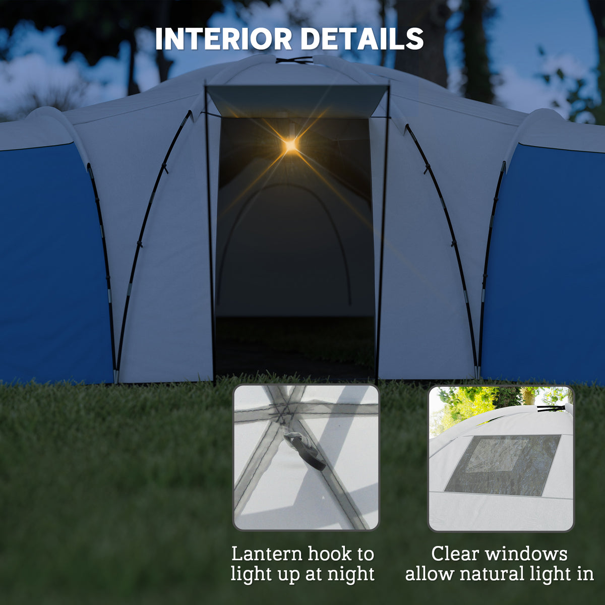 Outsunny 6-9 Man Tent with Bedrooms and Living Room, Accessories Included, Blue - Blue