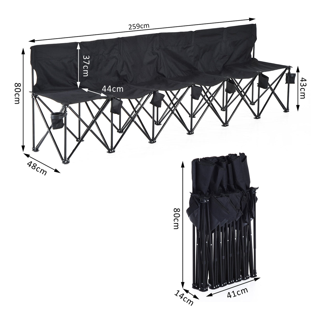 Outsunny 6 Seater Folding Camping Chair with Cup Holder & Carry Bag - Black - Black