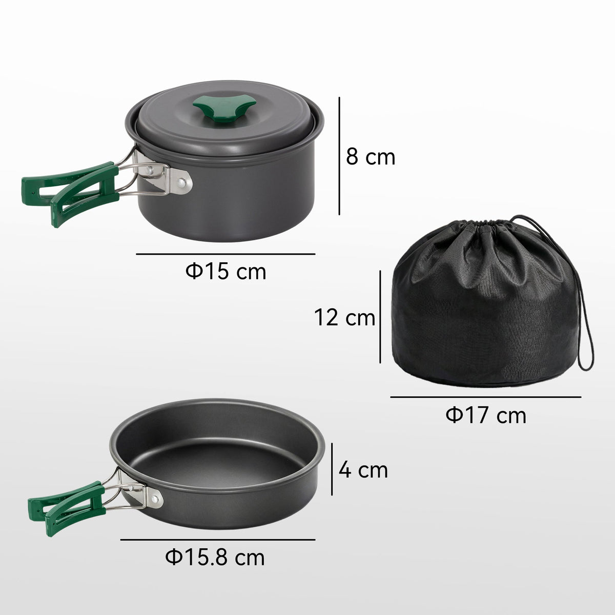 Outsunny Camping Cookware Set, 8-Piece Ultralight Camping Cooking Kit with Anti-Scald Handles, Grey - Grey