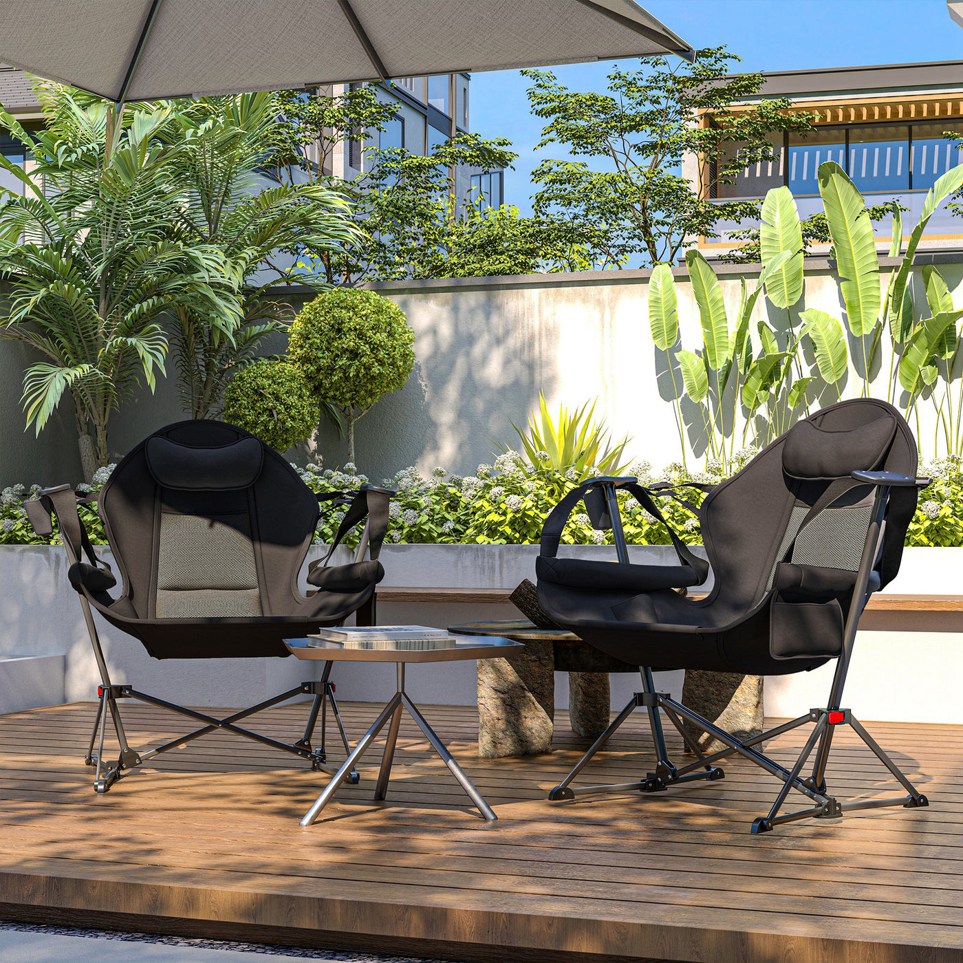 Outsunny Hammock Camping Chair Set of 2, Adjustable Back Portable Swinging Camping Chair with Cup Holder, Headrest, Padded Seat and Carry Bag for Travel Fishing Hiking, Black - Black