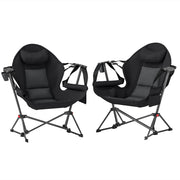 Outsunny Hammock Camping Chair Set of 2, Adjustable Back Portable Swinging Camping Chair with Cup Holder, Headrest, Padded Seat and Carry Bag for Travel Fishing Hiking, Black - Black