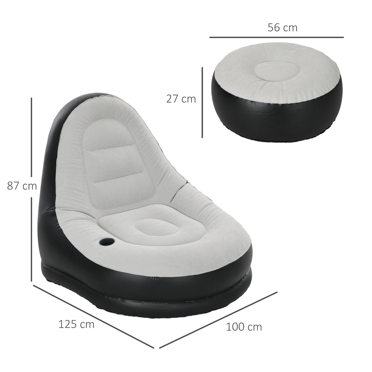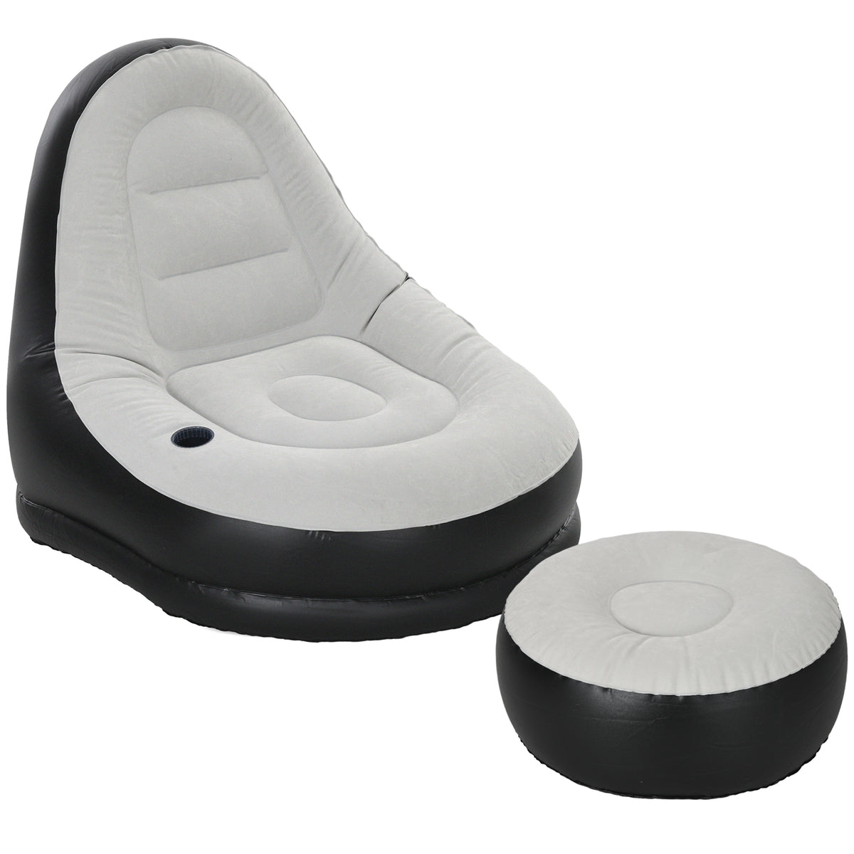Outsunny Inflatable Tub Chair and Footstool, Grey - Grey, Black