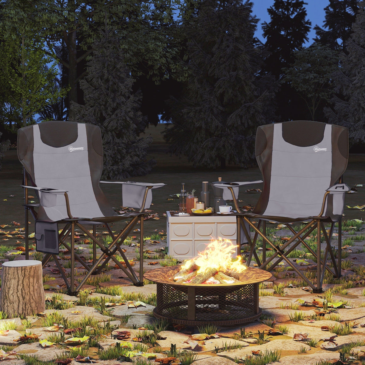 Outsunny Set of 2 Folding Camping Chairs, Padded Camping Chairs with Adjustable Armrests, Portable & Lightweight Folding Camp Chair with Cooler Bag, Cup Holder and Side Pockets, Grey - Grey