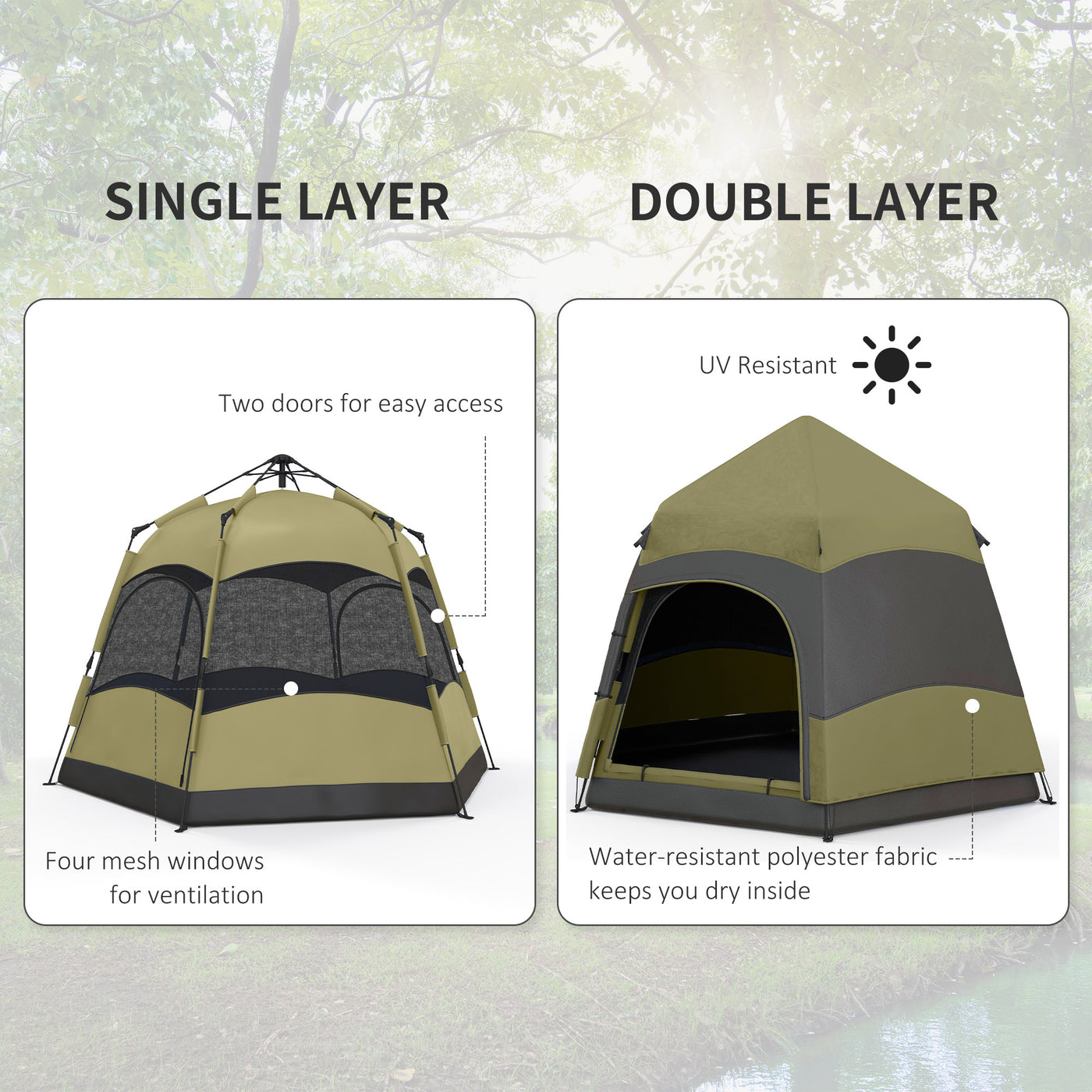 Outsunny Six Man Hexagon Camping Tent with Hang Hook and Carry Bag - Dark Green and Light Grey - Dark Green, Light Grey