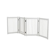 Colour: White Material: Pine Wood Unfolding Dimension: 205 x 76 cm (L x H) Folding Dimension: 51 x 8.5 x 76 cm (L x W x H) Net Weight: 7 kg Box Qty:1(May vary by batch)Package Includes: 1 x 4-panel Dog Gate 1 x Instruction Manual