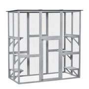 PawHut Wooden Catio Cat Outdoor Enclosure, Cat Cage with Waterproof Roof, Platforms, for Multiple Kittens, 180 x 98 x 180 cm - Light Grey