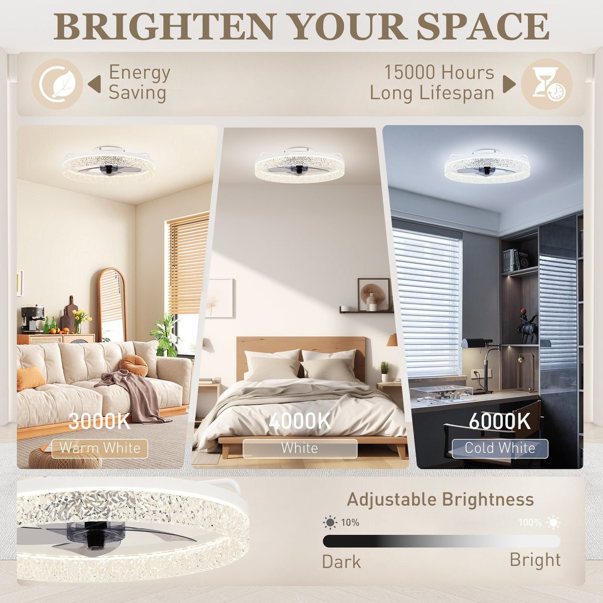HOMCOM Ceiling Fan with Lights, Dimmable LED Mount Ceiling Fan Light with Remote App Control for Bedroom, White - White