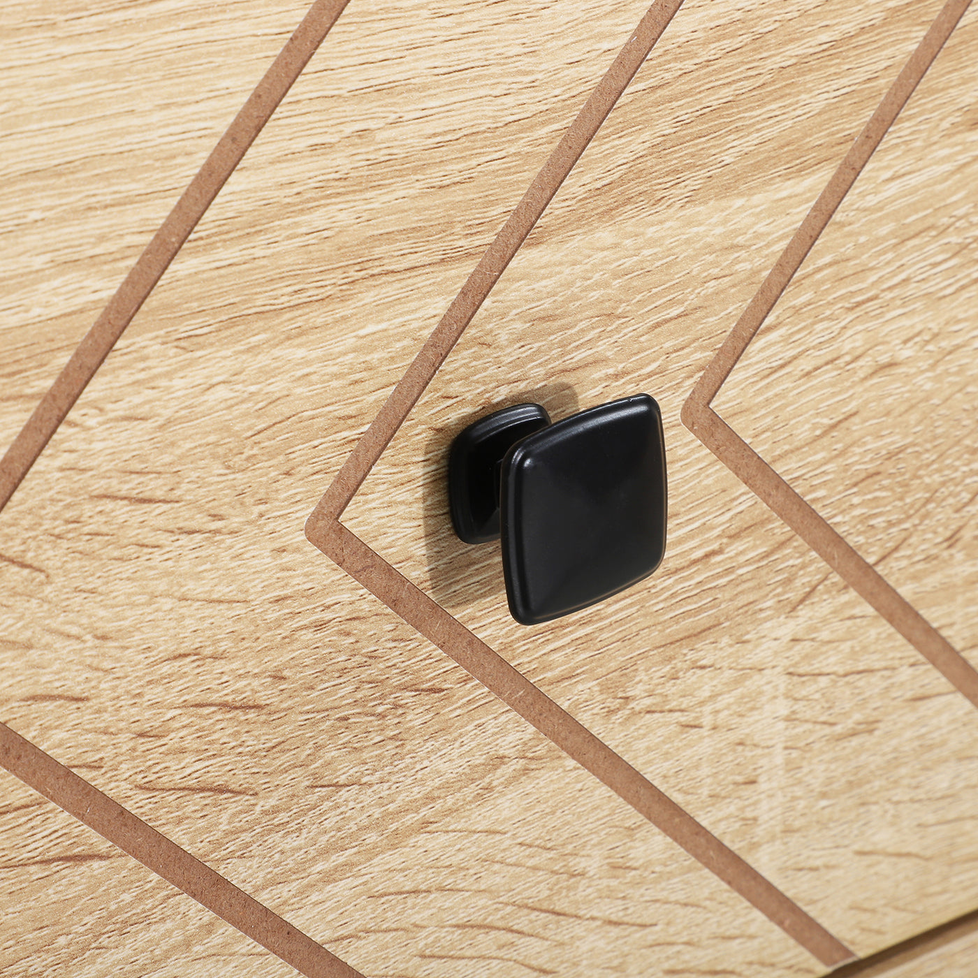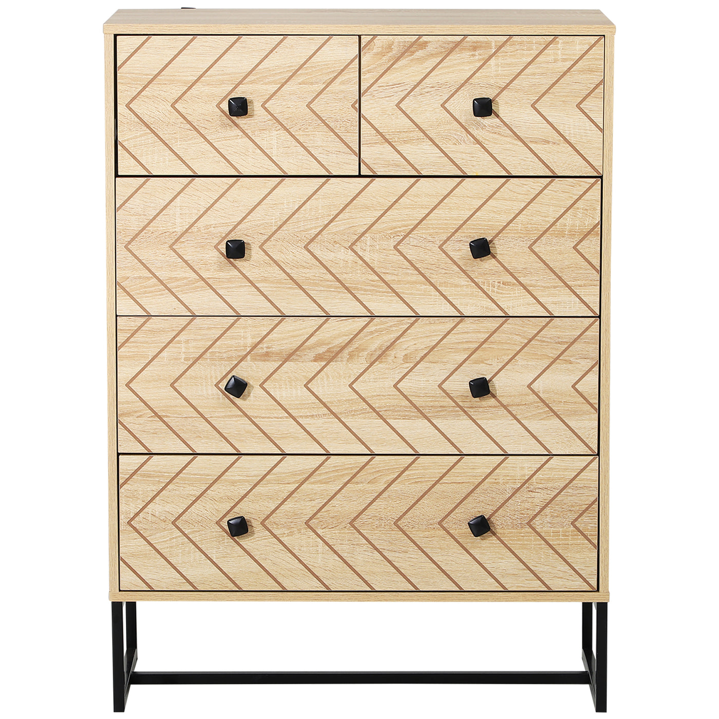 HOMCOM 5 Drawer Chest Sideboard Cabinet Storage Unit Bedroom Home Unique Zigzag Design w/ Black Metal Handles Anti Tip & Top - Natual Wood Color