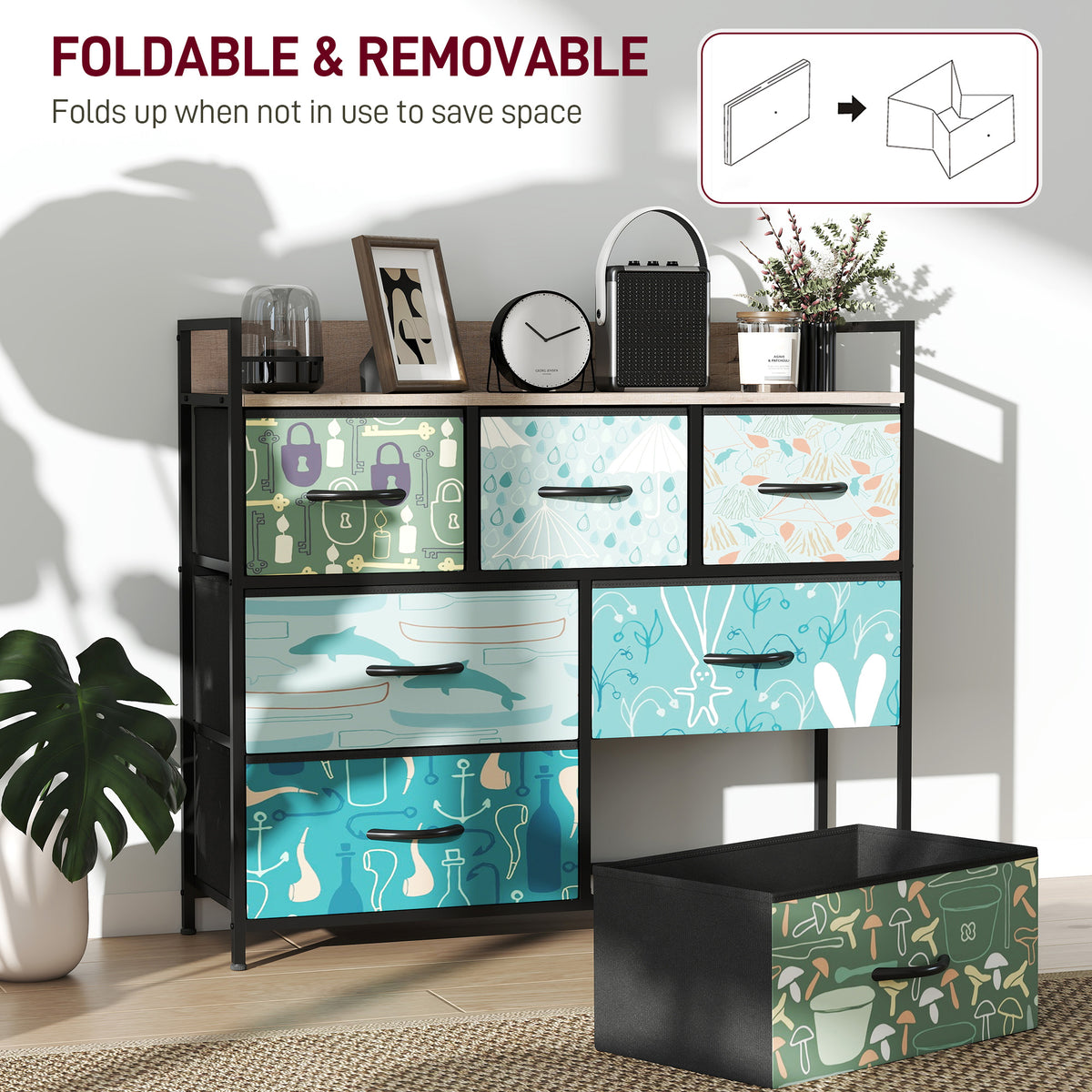 HOMCOM 7-Drawer Chest of Drawers - Blue