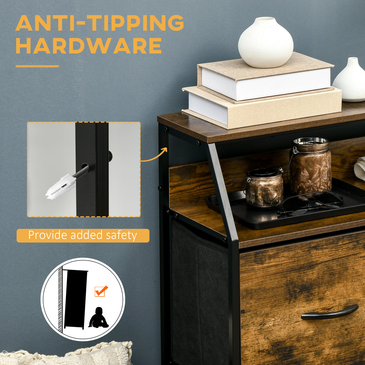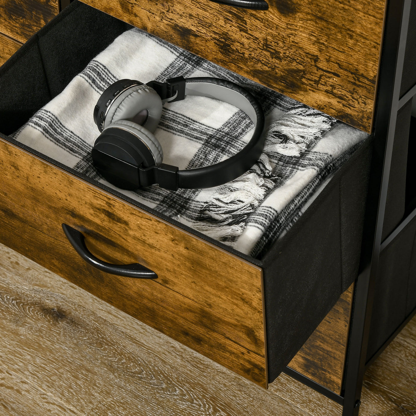 HOMCOM Bedroom Chest of Drawers, Industrial 5 Fabric Drawer Dresser with Open Shelf for Living Room, Rustic Brown - Rustic Brown