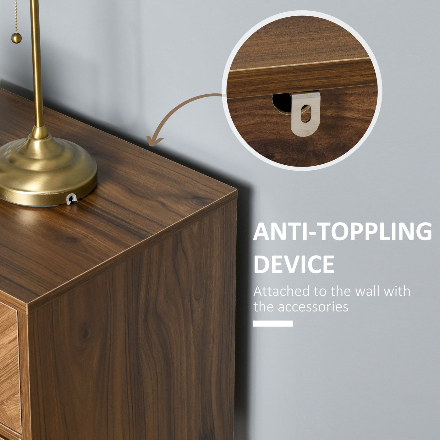 HOMCOM Bedside Table with Two Drawers, Side Cabinet Storage Unit with Metal Handles, Organisation Furniture for Living Room, Bedroom, Walnut Brown - Walnut Brown