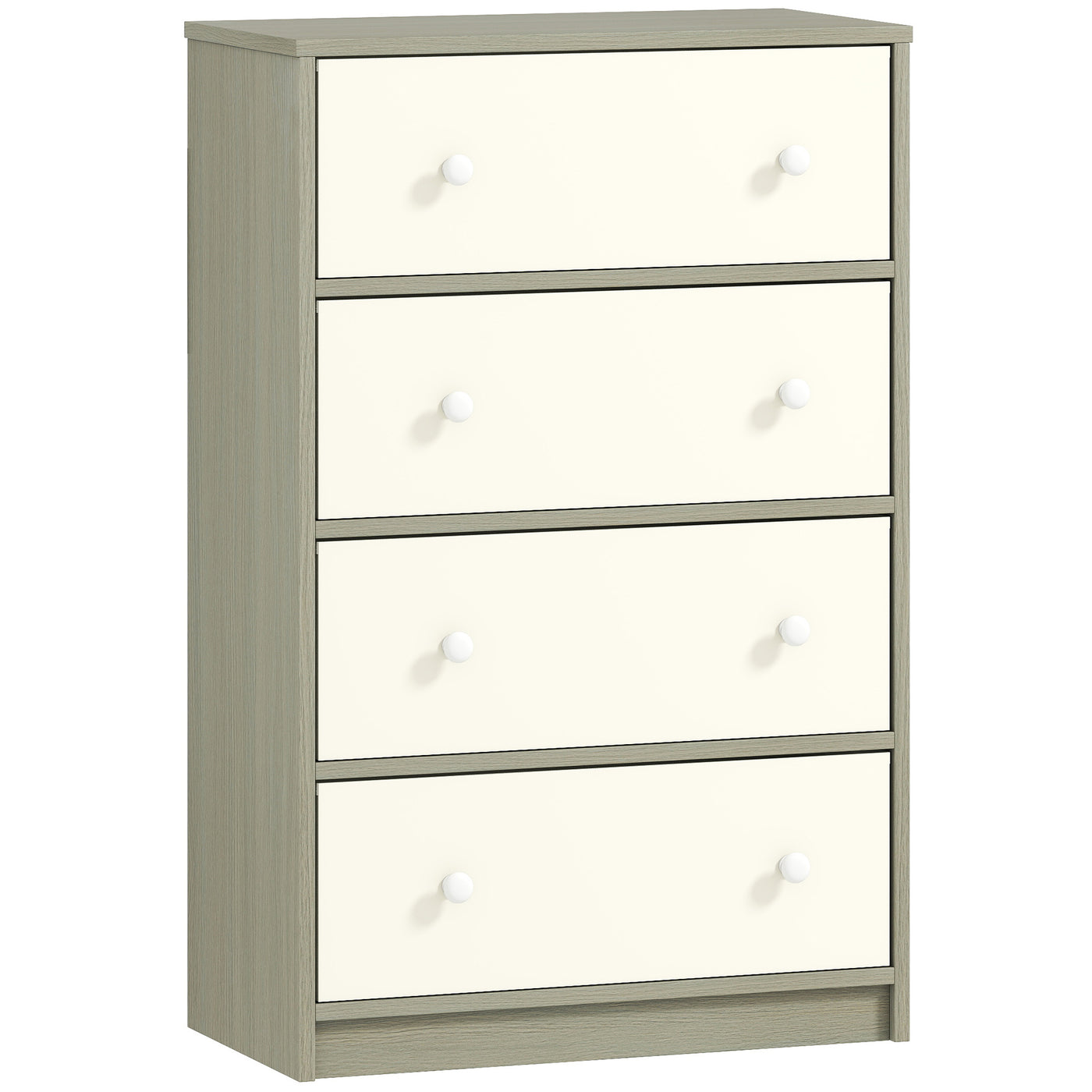 HOMCOM Chest of Drawers, Dresser with 4 Fabric Drawers - White and Grey - White and Grey