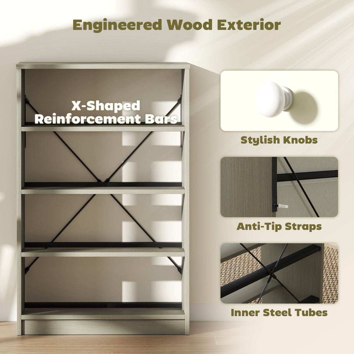 Bring style and order to your bedroom with this chest of drawers from HOMCOM. Featuring four foldable fabric drawers, it...